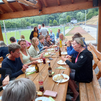 Nach dem sportlichen Einsatz ging es dann zum gemütlichen Teil über und der Tag wurde einem Gläschen Sekt, mit Grillgut, leckeren Salaten und Dips ausklingen gelassen.