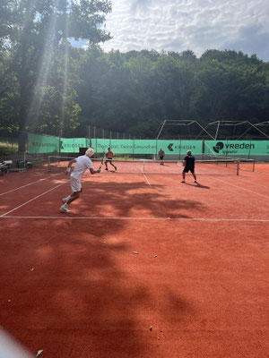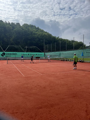 Die Damen der SG vertrauten dann bei der Doppelaufstellung auf Ihre erfahrenen und erfolgserprobten Doppelpaarungen Birgit Remy / Tanja Auer für Doppel eins und Kerstin Kreischer / Petra Deuster für Doppel zwei. Alle vier versuchten, die sengenden Temperaturen auszublenden und nochmal alle Reserven zu mobilisieren und so konnte Doppel eins nach packendem Matchtiebreak das 4:2 sichern.