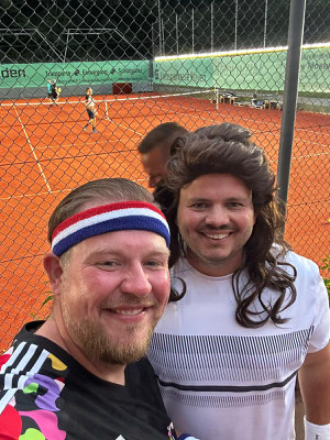 Am Samstag fand dann ab 10.00 Uhr das Tennisturnier statt, welches im Doppelmodus und im Zeitmodus 2 x 20 Minuten ausgetragen wird. Nach harten und hochklassigen Spielen standen um 16.00 Uhr die Sieger Matthias Meid und Marc Geurten aus Nickenich fest.