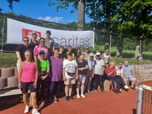 Nickenich, 31.05.2025 – In diesem Jahr konnten die Bewohner des Caritas Zentrums einen besonderen Ausflug zum Tennisclub TC Nickenich erleben. Im Vorletzten sowie im vergangenem Jahr veranstalteten das Caritas Zentrum, eine Einrichtung für Menschen mit geistiger Behinderung, gemeinsam mit engagierten Mitglieder des TC Nickenich einen Tennistag, an dem 19 Bewohner aus der Einrichtung mit Standorten in Mendig, Polch und Mayen teilnehmen konnten. Das Ziel: Den Bewohnern nicht nur einen sportlichen Tag zu bereiten, sondern sie spielerisch an die Grundlagen des Tennissports heranzuführen und den Spaß an Bewegung zu fördern.